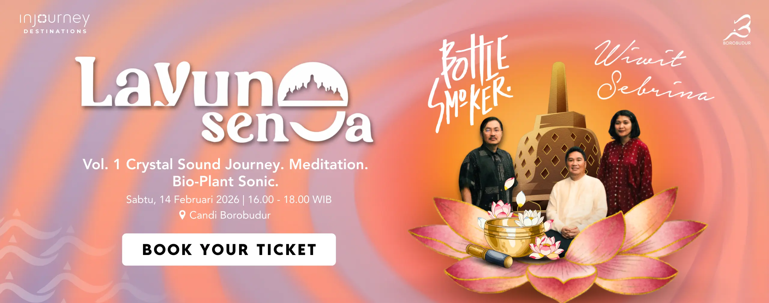 Borobudur Sunset entrance ticket to see the sunset at Borobudur. Includes dinner and a souvenir. Limited