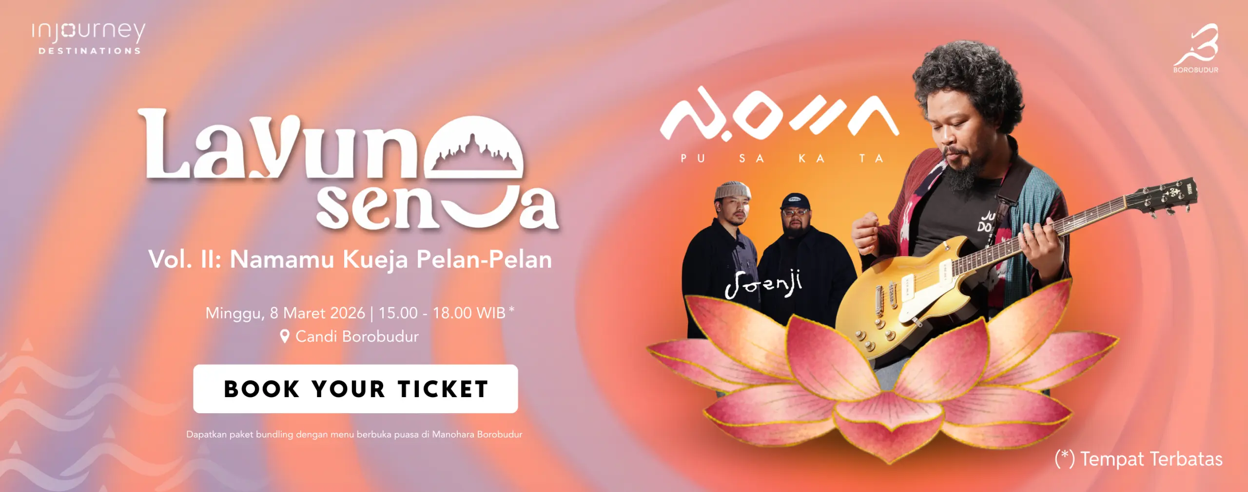 Tiket masuk Borobudur Sunset, lihat matahari terbenam di Borobudur. Termasuk makan malam dan souvenir.